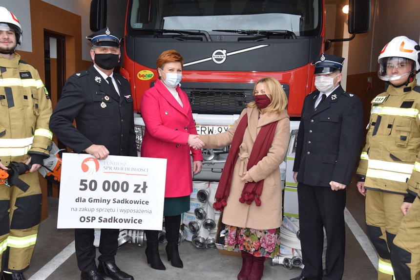 Gmina Sadkowice otrzymała 50 000 zł z Funduszu Sprawiedliwości na zakup sprzętu i wyposażenia dla Ochotniczej Straży Pożarnej w Sadkowicach.