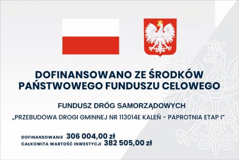 W grudniu zakończył się I etap przebudowy drogi gminnej nr 113204E Kaleń-Paprotnia.