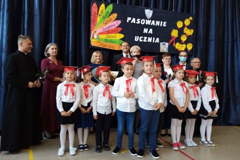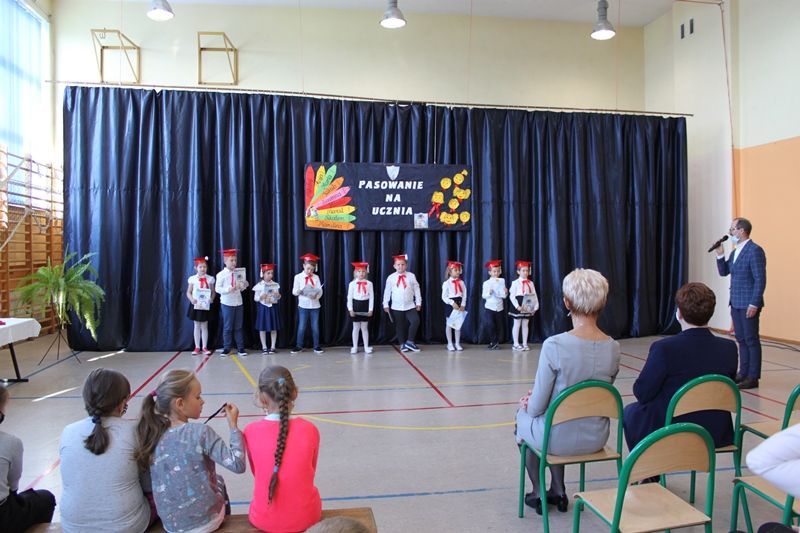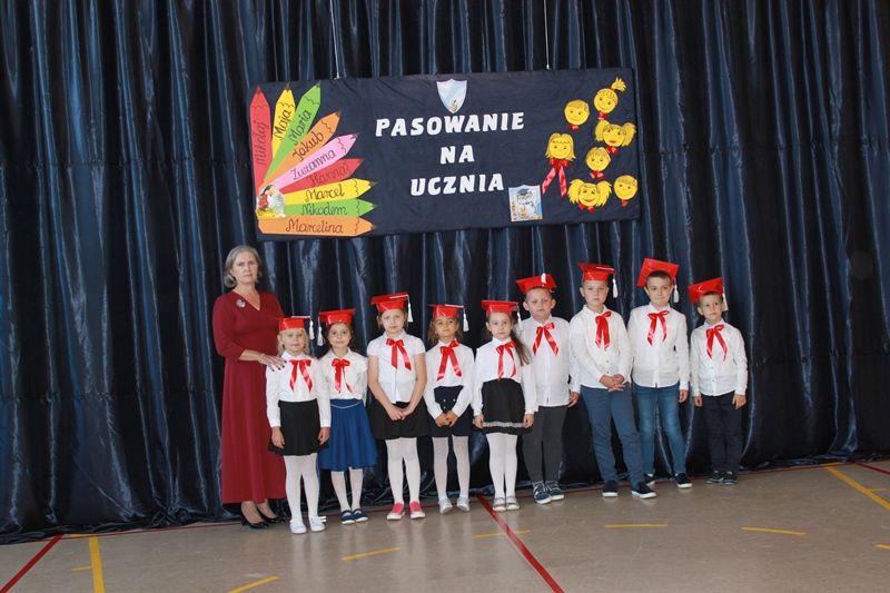 W tym szczególnym dniu życzyła im wielu sukcesów w wędrówce po kolejnych szczeblach edukacji. Dzieci złożyły uroczystą przysięgę na sztandar szkoły. Obiecały, że będą starać się solidnie wypełniać obowiązki, wynikające z roli ucznia i godnie reprezentować szkołę. Następnie każde z nich zostało pasowane na ucznia przez symboliczne dotknięcie ramienia dużym ołówkiem. Doświadczeni uczniowie ze starszych klas z radością powitali pierwszaków w społeczności szkolnej udzielając im swoich wskazówek i rad.