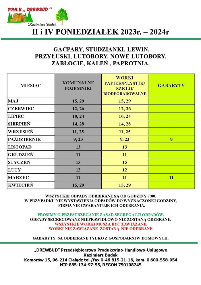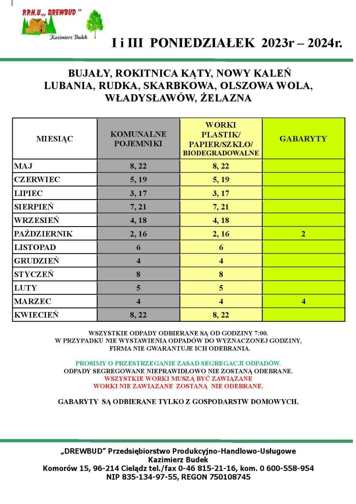 W maju 2023 r. zamiast odbioru w dniu 6 maja, odbiór odbędzie się w dniu 16 maja, poprawiony harmonogram poniżej.