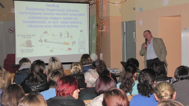 W dniu 27.01.2016r. podczas ogólnego zebrania z rodzicami na koniec I półrocza, odbyło się podsumowanie projektu edukacyjnego, który realizowany był od grudnia 2015r. przez uczniów klasy drugiej gimnazjum, pod kierunkiem członka Gminnej Komisji Rozwiązywania Problemów Alkoholowych w Sadkowicach pana Radosława Kowalczyka. Podczas podsumowania tegorocznego projektu edukacyjnego obecni byli zaproszeni goście: pani Barbara Gąsiorowska – Sekretarz Gminy Sadkowice, pani Maria Domeradzka – przewodnicząca Gminnej Komisji Rozwiązywania Problemów Alkoholowych w Sadkowicach, pani Urszula Michalak - kierownik Gminnego Ośrodka Pomocy Społecznej w Sadkowicach oraz pan dzielnicowy Łukasz Męcina. Podsumowanie poprzedzało szkolenie dla rodziców na temat szkodliwości dopalaczy i używek przeprowadzone przez sierż. sztab. Łukasza Męcinę oraz pedagoga Zespołu Szkół w Sadkowicach pana Sławomira Ekiela.