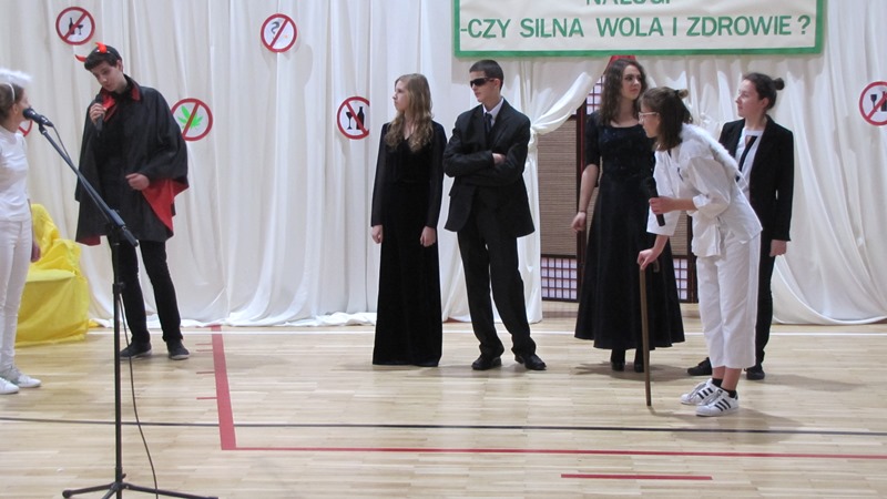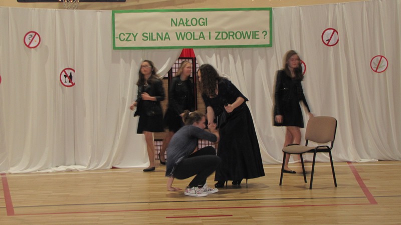 Wszyscy bardzo się starali, aby ich role wypadły wiarygodnie. Do przedstawienia uczniowie przygotowywali się od miesiąca, uczestnicząc codziennie w próbach pod okiem nauczycieli: Magdaleny Pajdy, Urszuli Adamczyk i Radosława Kowalczyka. Zaangażowanie uczniów i ich ciężka praca zostały docenione przez licznie zgromadzonych rodziców i zaproszonych gości oraz nagrodzone gromkimi brawami. Realizacja projektu edukacyjnego dała uczniom możliwość współpracy w grupie, nauczyła odpowiedzialności i kreatywnego myślenia. Projekt „Nałogi czy silna wola i zdrowie?” miał na celu pogłębić wiedzę uczniów na temat niebezpiecznych używek oraz przestrzec przed ich zgubnym wpływem na zdrowie młodego człowieka. Najstarsi gimnazjaliści natomiast, wykonali prezentację multimedialną nt. konsekwencji wynikających z zażywania różnego rodzaju używek, a w szczególności nowych narkotyków i ich negatywnego wpływu na życie człowieka, która została zaprezentowana całej społeczności uczniowskiej gimnazjum.