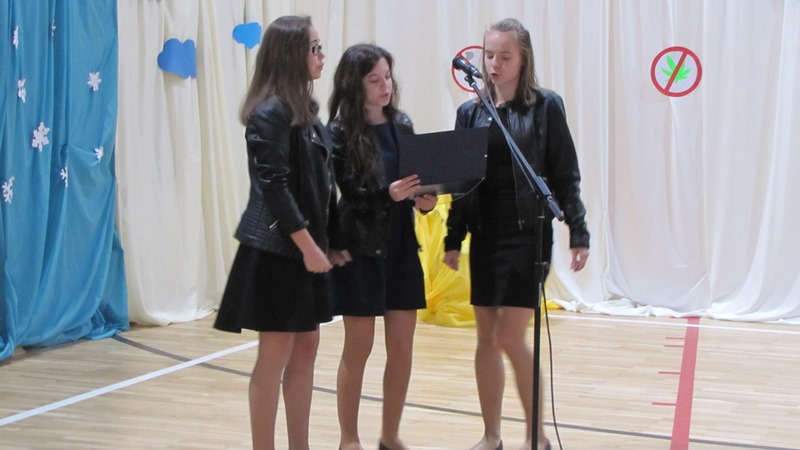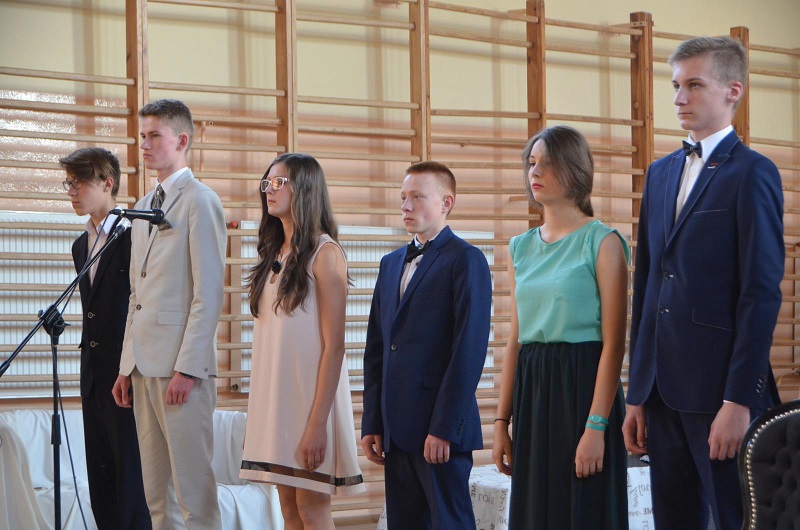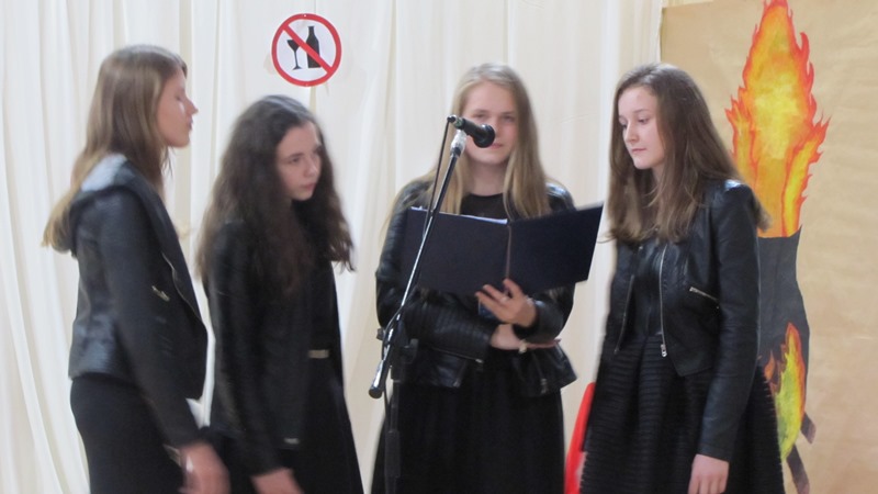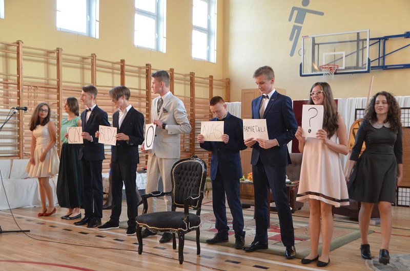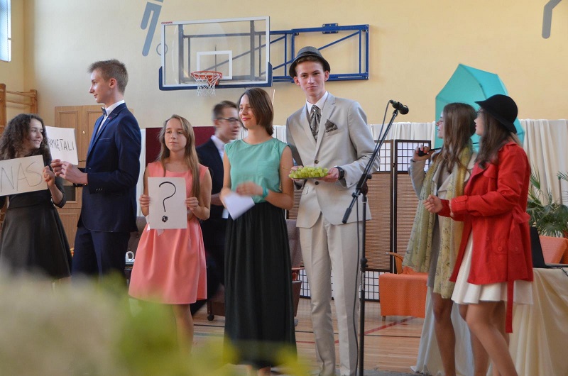 Na scenie prezentowało się dwanaścioro uczniów w osobach: Marysia Jasińska, Natalia Zdzieszyńska, Natalia Mazurkiewicz, Natalia First, Marta Malinowska, Marysia Gut, Jola Cholewińska, Mateusz Biskupiak, Eryk Skrętowski, Adrian Rojecki, Kuba Albrecht, Patryk Klimaszewski. Ci młodzi ludzie „obrobili” interpretacyjnie wypowiadane kwestie poetyckie w sposób absolutnie profesjonalny, angażując swoje głębokie emocje. Na twarzach szkolnych aktorów widać było przeżycia. Gościł na nich uśmiech, radość, złość, żal, smutek i niepewność, „bo przyszłość niepewna”.
