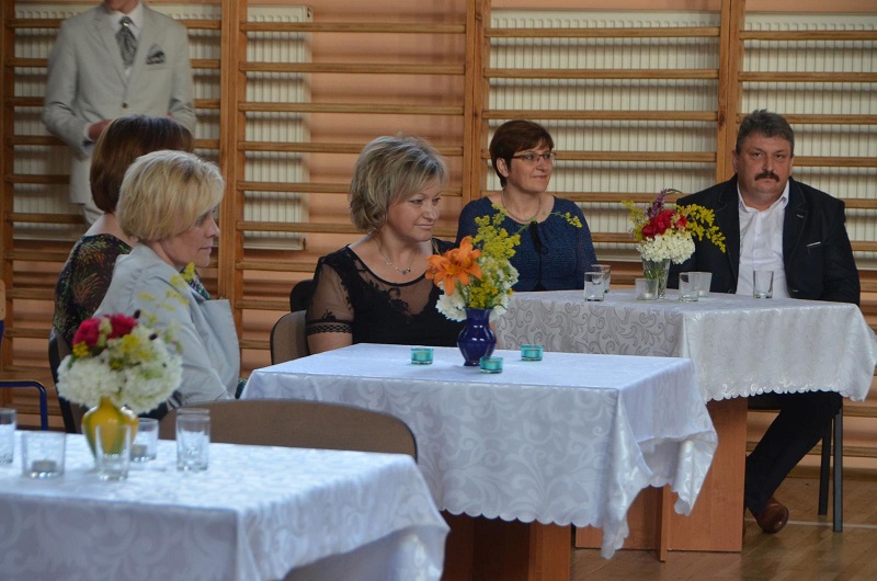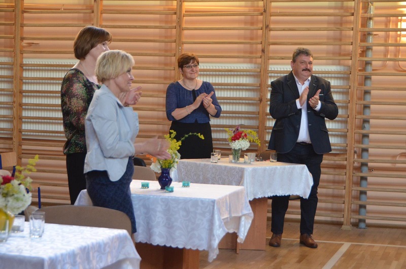 Dalsza część uroczystości dotyczyła obchodów Dnia Edukacji Narodowej. W swoim wystąpieniu Pani Wójt podziękowała nauczycielom za ich trud jaki wkładają w wychowanie młodego pokolenia. Za odpowiedzialną pracę na rzecz kształtowania umysłów i serc uczniów Pani Karolina Kowalska przyznała nagrodę Panu dyrektorowi Markowi Lewandowskiemu oraz Pani wicedyrektor Teresie Wielgus. Natomiast Pani Wioletta Wieteska i Pan Radosław Kowalczyk otrzymali nagrodę za pracę na rzecz Ludowego Uczniowskiego Klubu Sportowego - Sadkowice. W dalszej części życzenia nauczycielom złożył Pan Dyrektor, Samorząd Uczniowski, Ks. Proboszcz oraz Rada Rodziców Zespołu Szkół w Sadkowicach.