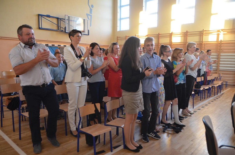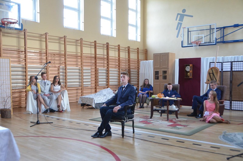 W wyjątkowy sposób młodzież klasy III gimnazjum pożegnała swoją szkołę – przygotowała i wystawiła program teatralny pt. „Przez czas z poezją i muzyką”, który wyreżyserowała Beata Pakuła. W dniu 3 lipca 2016 r. o godz. 19.00 w szkolnej sali gimnastycznej zaproszeni mieszkańcy gminy Sadkowice mieli możliwość obejrzenia godzinnego widowiska teatralnego. Gminę Sadkowice reprezentowała Pani Barbara Gąsiorowska. Rozbrzmiały słowa o tym, co w życiu młodego człowieka jest ważne, o tym, że nie zawsze jest łatwo, ale też o tym, że życie jest piękne i warto zrobić coś niezwykłego, by być zapamiętanym. Można było też znaleźć w nich receptę na dojrzewanie bez utraty dziecięcej wrażliwości. Tematyka taka nabiera w ostatnim czasie szczególnego znaczenia w każdym wymiarze.