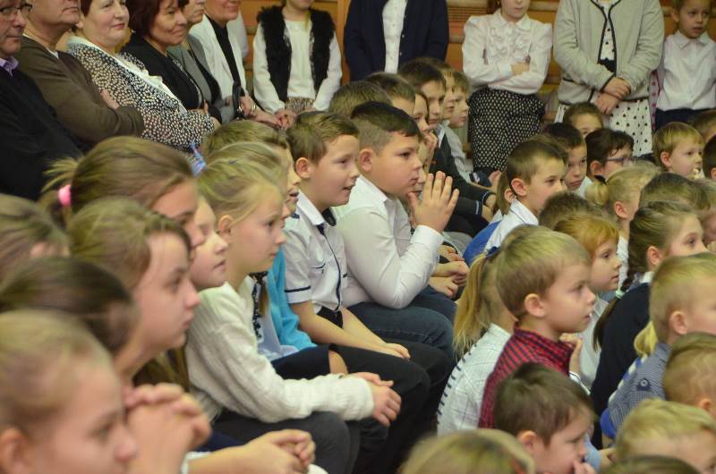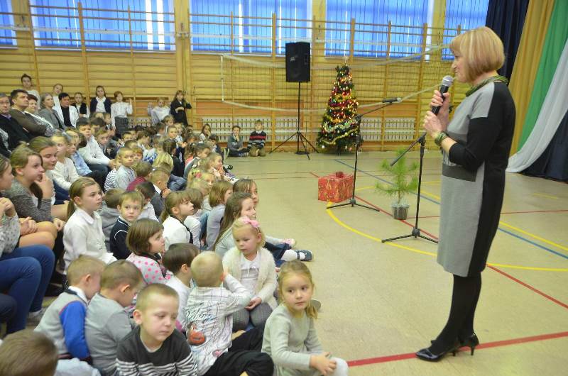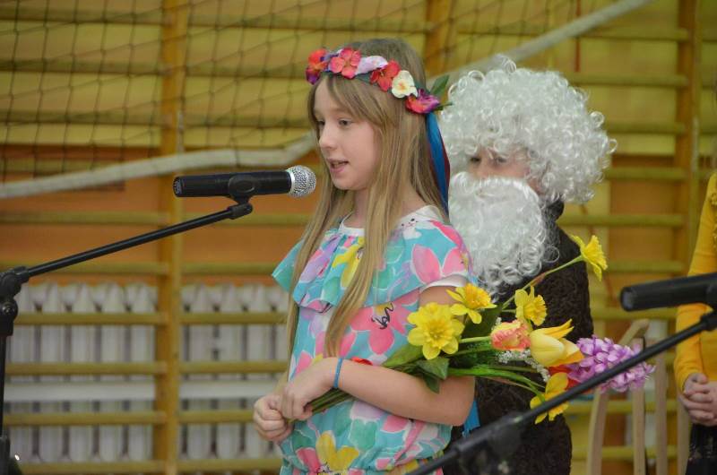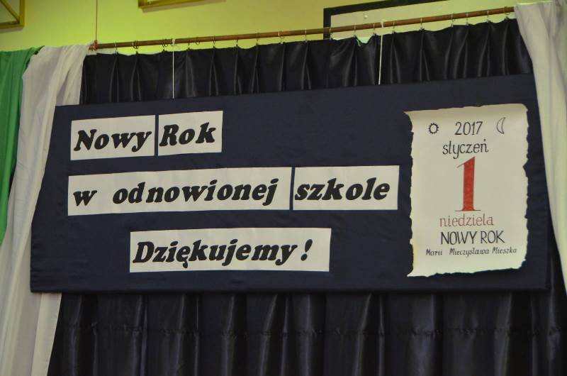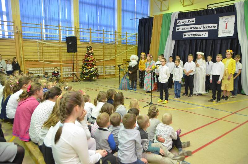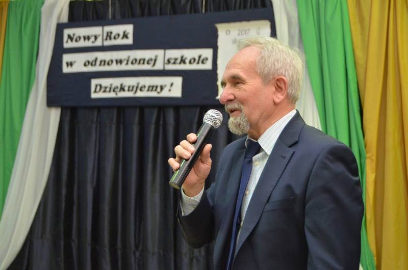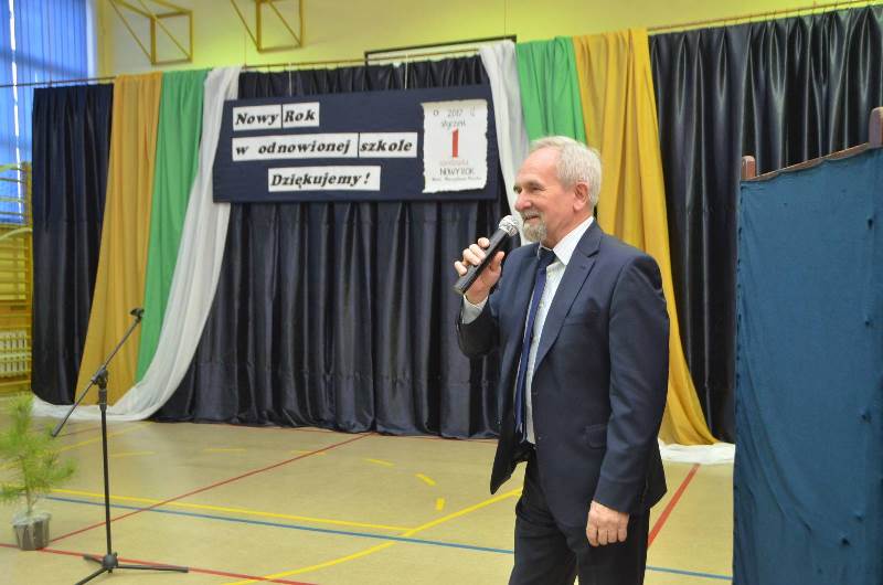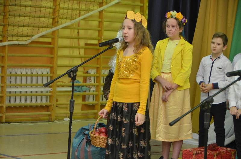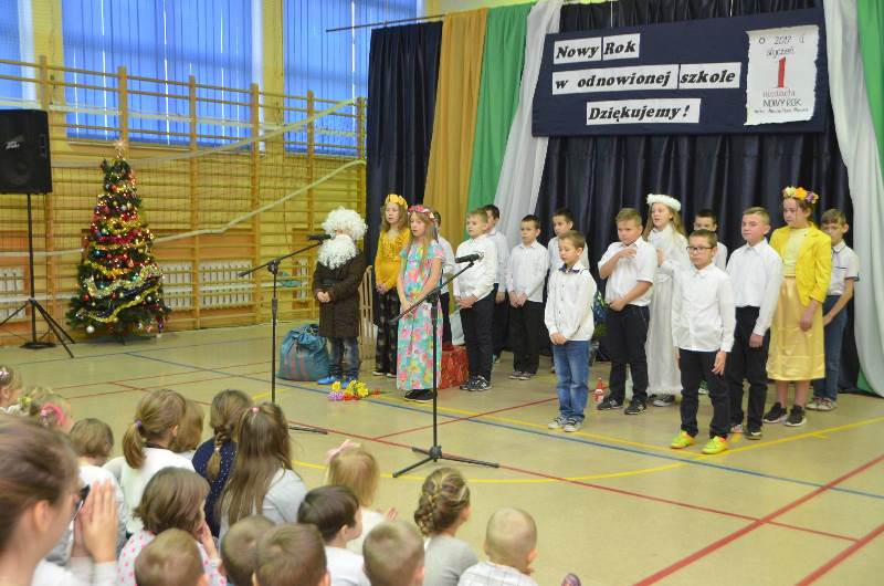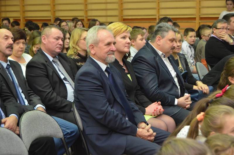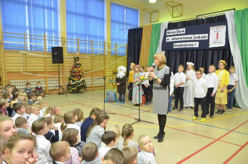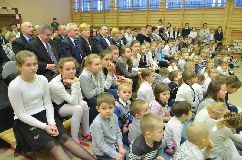 Specjalnie na tę uroczystość uczniowie z klasy IV wraz z wychowawczynią Panią Iwoną Górecką przygotowali przedstawienie nawiązujące się do zmieniających się pór roku. Po występie uczniów głos zabrała Pani Wójt, która podziękowała panu Prezesowi i panu Staroście za pomoc przy realizacji tej inwestycji. Słowa podziękowania skierowała również do pani Dyrektor oraz do wszystkich pracowników Zespołu Szkół, dziękując im za ich pracę. Mimo trwających prac przy remoncie budynku właściwie organizowali zajęcia , czuwali nad bezpieczeństwem uczniów. Specjalne podziękowania skierowała również do uczniów i rodziców za ich wyrozumiałość i cierpliwość.