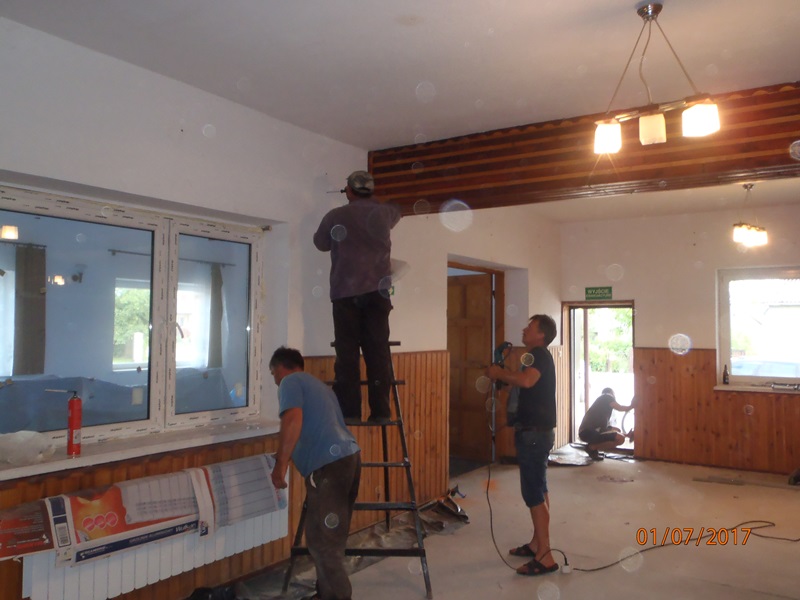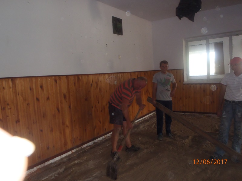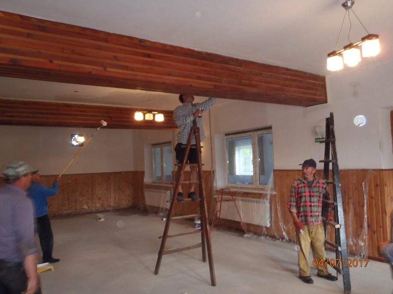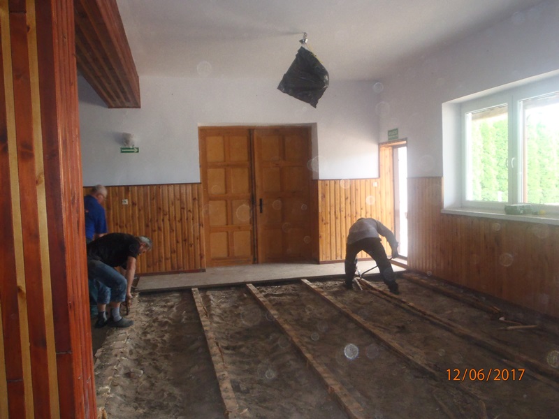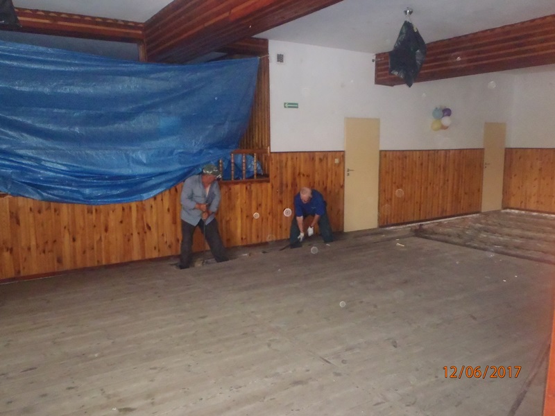 Z dniem 1 lipca mieszkańcy rozpoczęli remont swojej świetlicy. Na początku wynieśli meble do innego pomieszczenia i przygotowali pomieszczenie do remontu. Zerwali i zutylizowali podłogę wykonaną z desek, które były spróchniałe. Zakupili piach oraz styropian i folię pod wylewkę. Firma zewnętrzna wykonała wylewkę betonową oraz ułożyła płytki. Mieszkańcy w swoim zakresie posprzątali i umalowali pomieszczenie i ustawili meble.