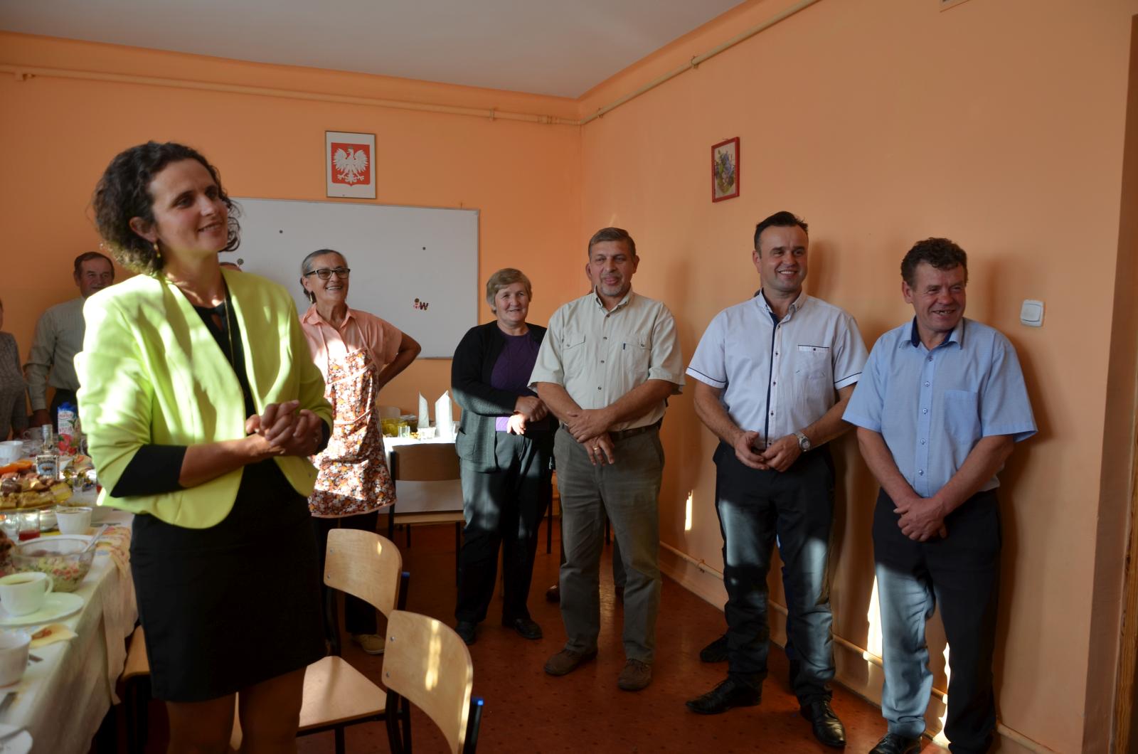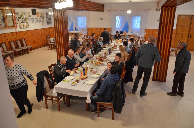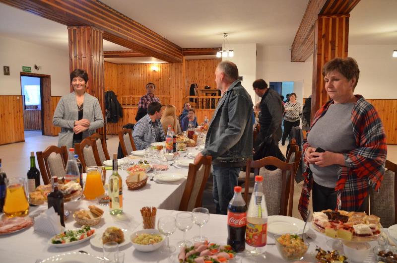 Przeprowadzone zostały również szkolenia z zakresu profilaktyki uzależnień: alkoholu, narkotyków i dopalaczy oraz warsztaty kulinarne. Na zakończenie projektu mieszkańcy zorganizowali imprezę integracyjną. W odnowionej sali przy stołach nakrytych obrusami odbyło się świętowanie. Z mieszkańcami w imprezie integracyjnej uczestniczyli również pani Wójt, Przewodniczący Rady Gminy, radny Rady Gminy oraz ksiądz proboszcz. Wszyscy podziwiali pięknie odremontowaną salę.