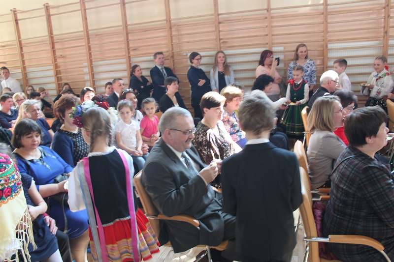 By tradycji stało się zadość, występujący złożyli wszystkim życzenia świąteczne, jak recytowała dziewczynka, „takie szczere i takie serdeczne”. Do słów deklamujących dołączył dyrektor szkoły, pan Marek Lewandowski, śląc wszystkim ciepłe słowa na zbliżającą się Wielkanoc. Wyjątkowo zwróciła się również do uczniów, nauczycieli i zgromadzonych gości sekretarz gminy Sadkowice, pani Barbara Gąsiorowska, która reprezentowała wójta gminy, panią Karolinę Kowalską. Wyraziła uznanie dla dzieci za ich zdolności, zaangażowanie i chęci, odwołując się nie tylko do dzisiejszego, ale i wcześniejszych występów uczniów. Doceniła trud nauczycieli, opiekunów i innych pracowników szkoły, włożony w przygotowanie artystycznej oprawy spotkań okolicznościowych. Wzruszające słowa skierował, także do zgromadzonych ksiądz Maciej Mroczkowski. W swojej wypowiedzi zamknął przesłanie wielkanocne, które na pewno zapadło wszystkim w serca i towarzyszyć będzie każdemu w tym wyjątkowym czasie świąt.