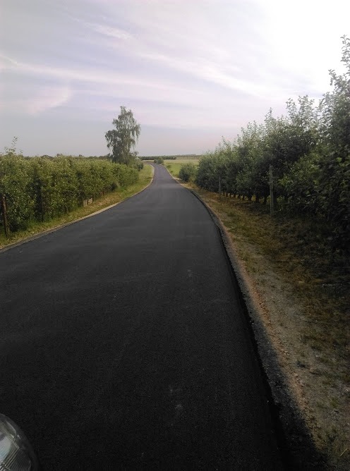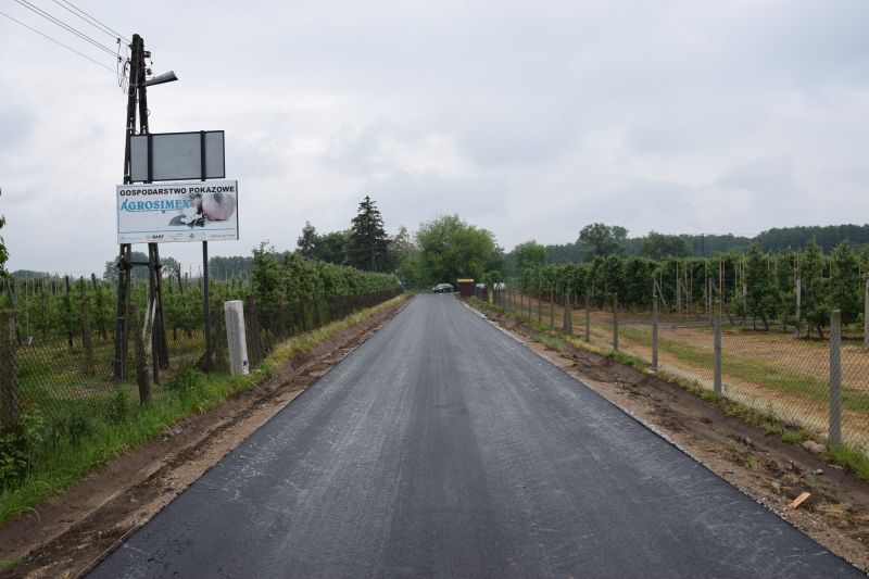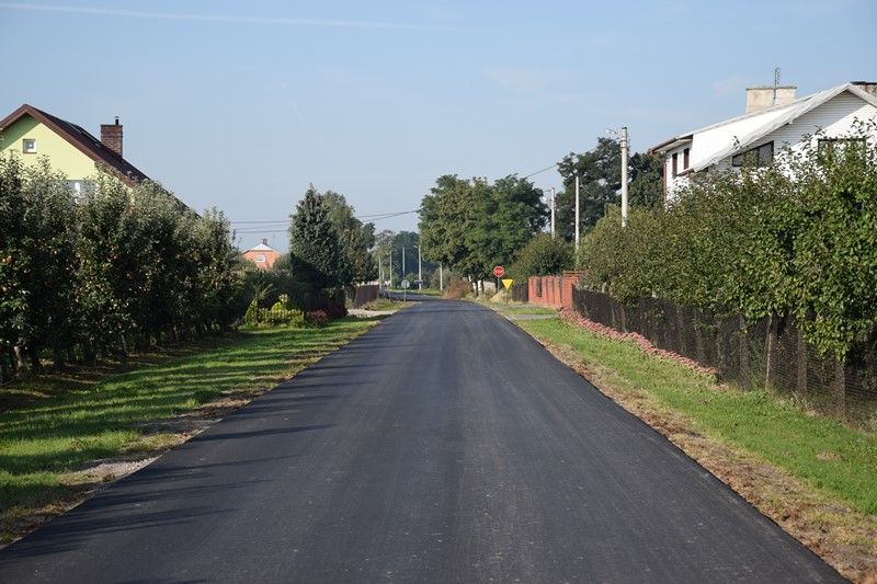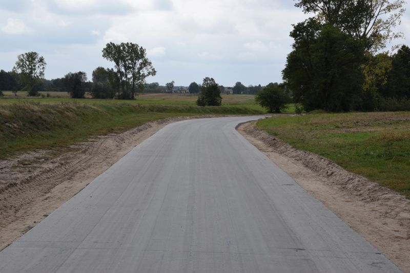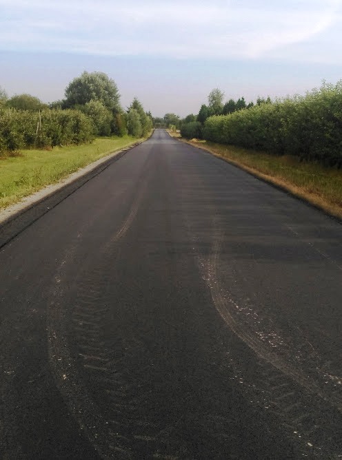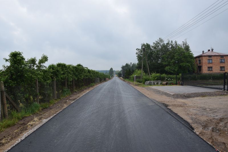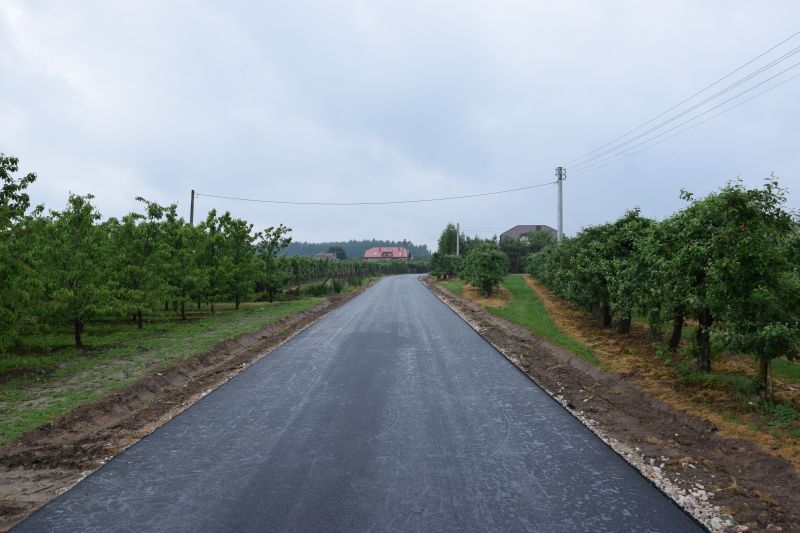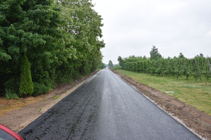W ramach przebudowy drogi wykonano, na odcinku 1.103 m, podbudowę z kruszywa i nawierzchnię bitumiczną oraz przepusty i pobocza.