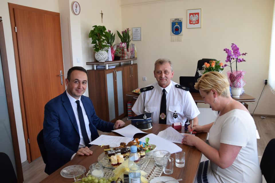 W dniu 3 lipca 2018 r. pani Wójt Karolina Kowalska podpisała umowę na dofinansowanie zadań w zakresie zakupu sprzętu służącego ochronie życia, zdrowia i mienia. Zarząd Województwa Łódzkiego reprezentował pan Dariusz Klimczak - Wicemarszałek Województwa Łódzkiego. W ramach umowy Gmina Sadkowice otrzymała środki finansowe w wysokości 11000,00 zł, które zostaną przeznaczone na zakup przecinarki do cięcia betonu i stali oraz pilarki do cięcia drewna. Wymieniony sprzęt trafi do Ochotniczej Straży Pożarnej w Sadkowicach.